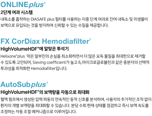 - 표준 혈액투석 뿐만 아니라 Online HDF 치료 중에도 측정