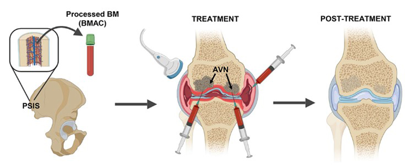 환자의 골반뼈 골수에서 줄기세포를 추출하여 원심분리기로 분리한 농축액을 무릎 관절강 내에 주사하는 비수술 주사치료 방법입니다. 중기이상 무릎관절염 환자에게 적합한 치료방법입니다.